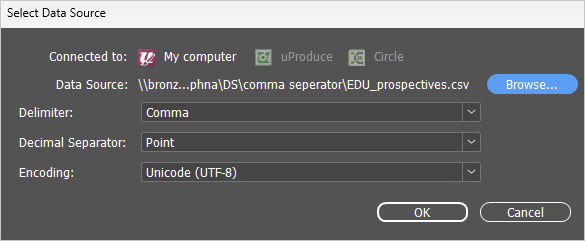 Encoding: You can choose the encoding for CSV files. If the file has BOM defined, the encoding will be selected by default, as defined by the BOM.