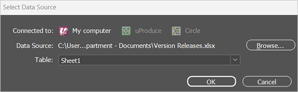 When you link your document to a data source, uCreate Print creates a content object for each column header in that data source.