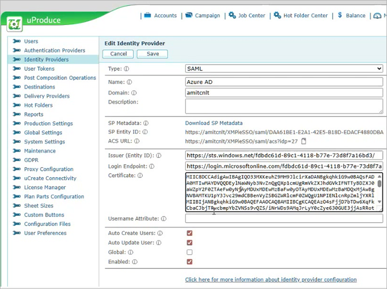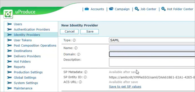 Step 3: Enter Identity Provider Details in uProduce