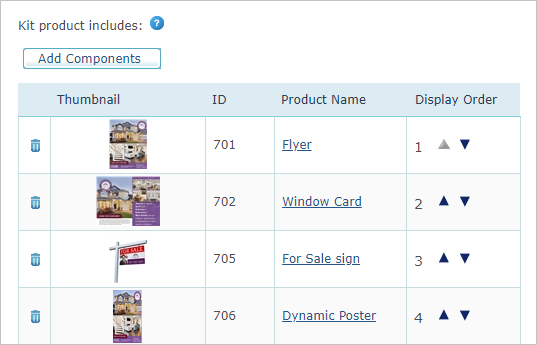 Einrichten von Kit-Produktkomponenten