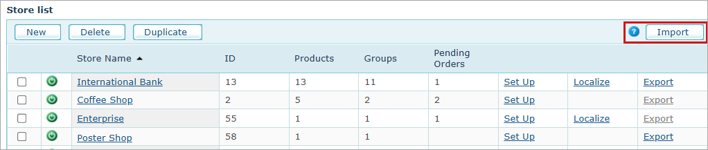 The new store is added to the list of stores. You can start working with this store as you have with any other store.