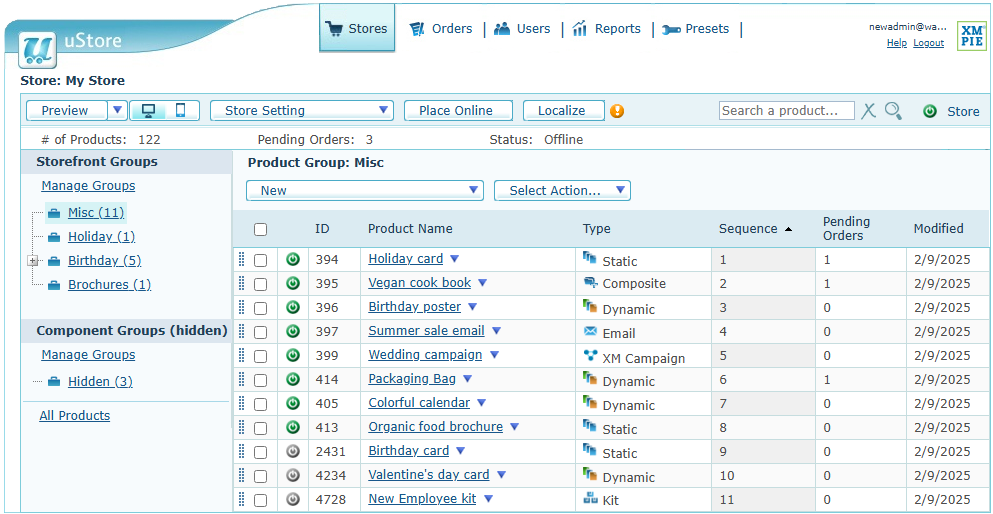 Modifier les produits existants.