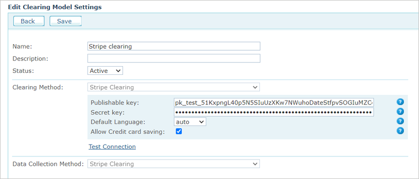 Cliquez sur Test de connexion, puis enregistrez cette nouvelle méthode de paiement.