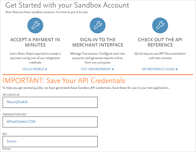 Allez sur https://developer.authorize.net/hello_world/sandbox.html.