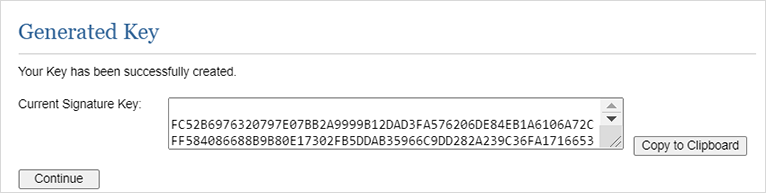 Sur l’écran Informations d'identification et clés API, sélectionnez Nouvelle clé de signature.