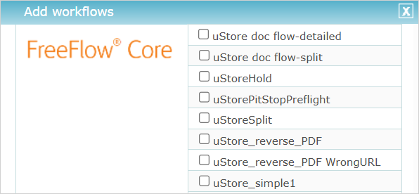 Xerox FreeFlow: Assure une intégration non intrusive avec l'application Xerox FreeFlow Core et le Gestionnaire de Processus Xerox FreeFlow. Les fournisseurs de processus Xerox FreeFlow vous permettent d’associer des processus définis dans Xerox FreeFlow Core ou Process Manager à des produits ou profils de produit uStore.