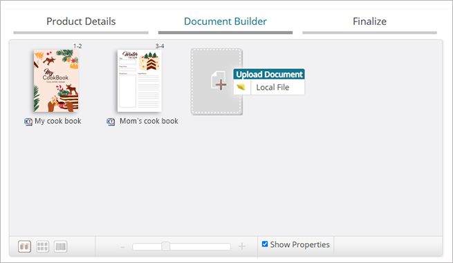Les produits composites incluent un ou plusieurs composants associés dans un seul produit. Les utilisateurs finaux ont la possibilité de créer leur propre document en combinant des composants sélectionnés dans un seul document. Lorsqu’il passe une commande, l’utilisateur final sélectionne les fichiers de composants à inclure dans le document imprimé final.