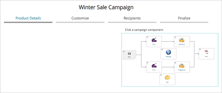 La plupart des campagnes multimédias s’étendent sur une période de temps. Par exemple, dans une campagne qui favorise l'inscription à un événement, le flux peut être le suivant : premièrement, une invitation imprimée est envoyée, suivie d'un rappel par courrier électronique avec un lien vers le site Web que le destinataire peut consulter pour s'inscrire. Une fois enregistré, le destinataire peut recevoir un courrier électronique de confirmation avec un PDF à télécharger indiquant les détails de l'événement.