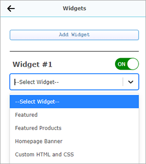 Dans la première liste déroulante, sélectionnez le widget concerné. La liste comprend tous les widgets prêts à l'emploi et les widgets qui ont été téléchargés dans les Outils.